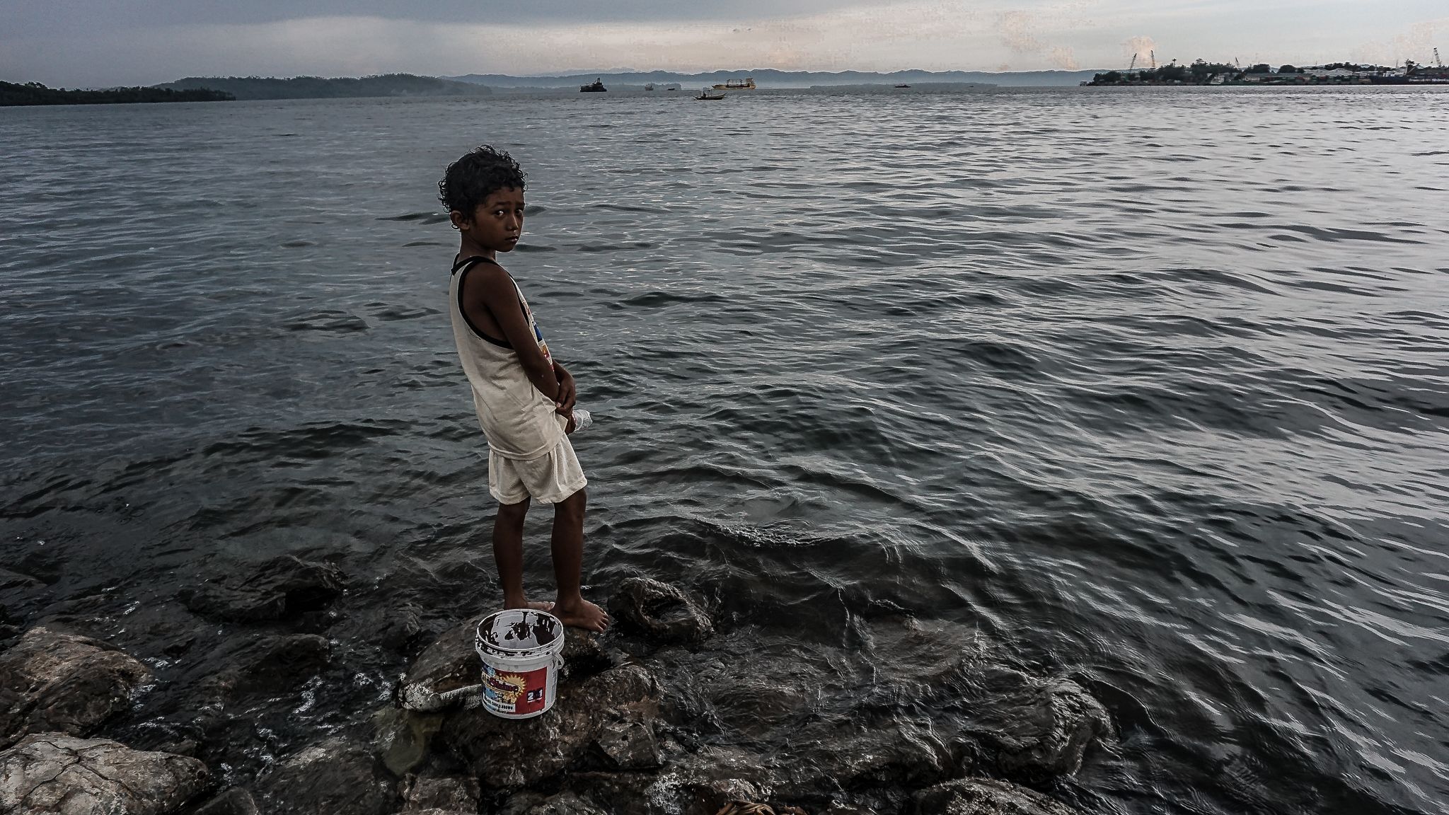 "Ayan, kalaro ko 'yan na si Kim Froilan. Ano po, nangingisda 'yan siya ng pang-ulam nila mamaya sa hapunan (That's my playmate Kim Froilan. He's catching fish so that they have food for dinner)," eight-year old Jhanalyn, who took this photo, explained.