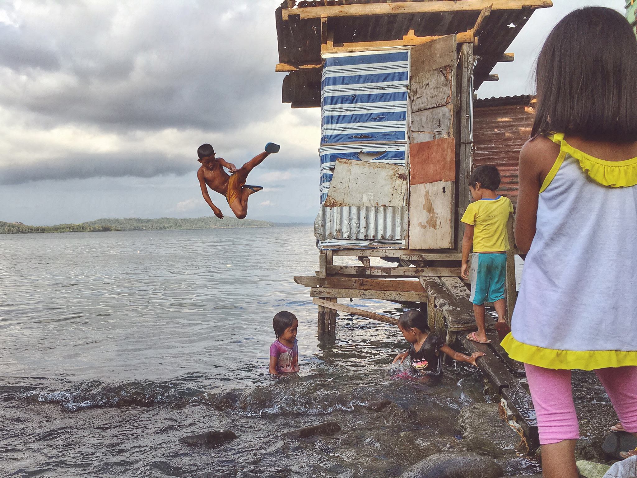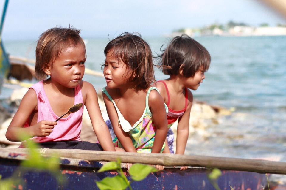 Out of the 2,160 residents of Barangay Anibong, Tacloban City, 619 are children. Lele dela Pena (leftmost) is now four years old. Lele is the seventh of the eight children of Sarah Dela Pena, a resident of Barangay Anibong. "Kumusta po silang lumalaki dito?" Sarah replied, "Ayan ganyan ganyan lang sila, laro laro. Langoy-langoy sila diyan sa dagat. Masaya naman kami dito." ("How are they growing up here?" Sarah replied, "Like that, just playing around. Sometimes, swimming and playing by the sea. We are happy here.")